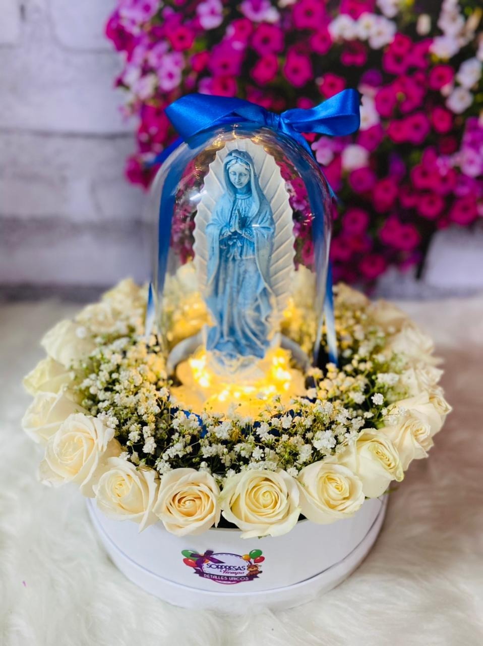 El color de las rosas y de la virgen están sujeto a disponibilidad de la tienda